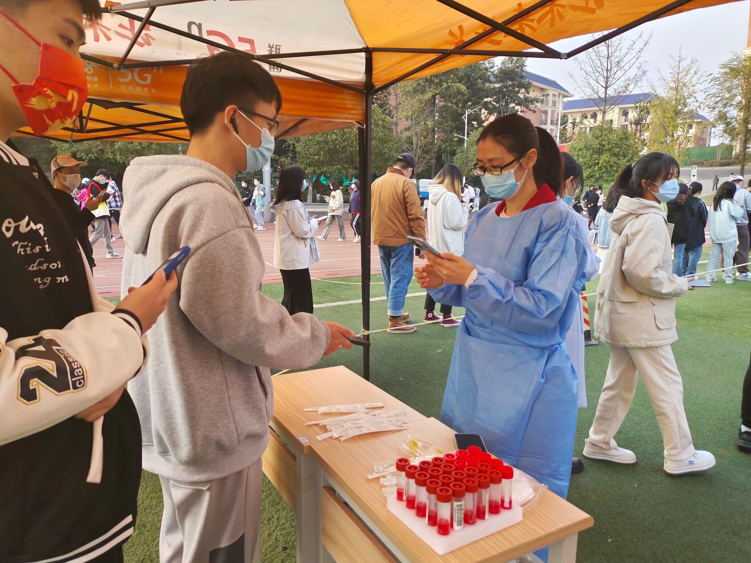 闻令而动,坚守疫情防控一线。面对形势严峻的疫情,软件学院教师党员曹型丽老师不退缩、不畏惧,连续数日,每天都坚守在核酸检测第一线。穿上密不透风的防护服,熟练地使用检测APP进行扫码登记,不辞辛苦的为大家登记信息,确认身份。