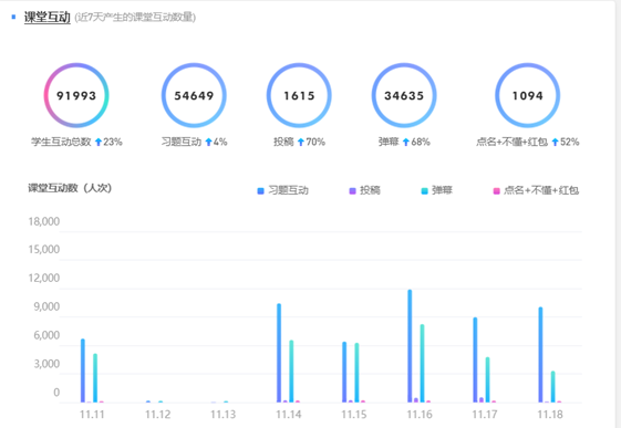 一是求实求效,实现线上教学同频共振。坚持“教学模式不照搬、教学内容不减少、教学质量不降低”原则,建立“学校教学督导+学院质量监控+学生信息反馈”三级线上教学质量把关体系,实行教学运行与质量保障日报告反馈机制,每天通报前一天各二级学院每日开课课程、授课教师、线上教学三大平台使用、教学保障、雨课堂平台在线教学质量监控、教学督导抽查、学情调查等情况并指导改进、督促落实。雨课堂平台全程在线,随时帮助解决教学技术问题。
