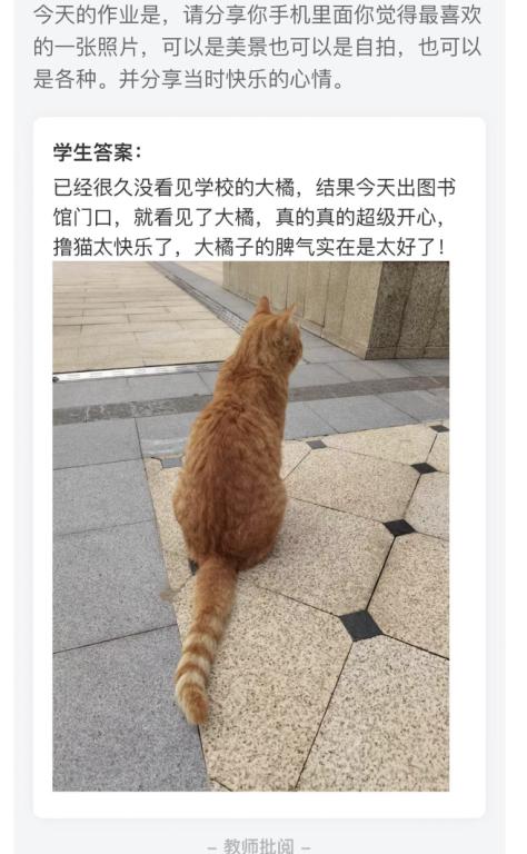 “教者有心,学者得益”。自11月初开展线上教学以来,教师如何优化学生作业设计,如何及时批改和评价反馈学生的作业显得尤为重要。我校某教师为了关心学生的身心健康,有效舒缓学生疫情在校期间的不良情绪,在完成了本周的教学任务后,特意给学生布置了一道温暖的”云端作业”。作业题目是:请分享你手机里面你觉得最喜欢的一张照片,可以是美景也可以是自拍,也可以是其他,并分享当时快乐的心情。”随后,学生们纷纷上传了自己心中最喜欢的一张照片,并纷纷讲述了照片背后的美好故事。