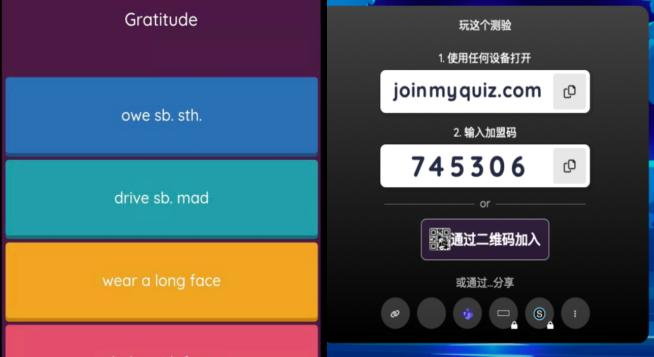线上课会导致学生参与感缺失。为了让学生更好地记忆和运用所学知识,廖颖老师基于主动学习理论和同伴竞争效应,运用了一款游戏化测试网站,让学生们在参与游戏对战的同时完成课堂学习内容。该网站页面精美、音效活泼,有效增加了学生们的学习乐趣与参与度。学生反馈使用这个方法后,快乐的同时也加深了对知识的记忆,其学习主动性和学习效率均有所提高,对大学英语课堂有了更多的期待和热情。