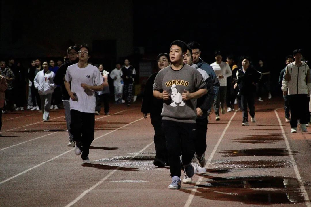 夜晚的操场灯火通明 一片热闹惬意