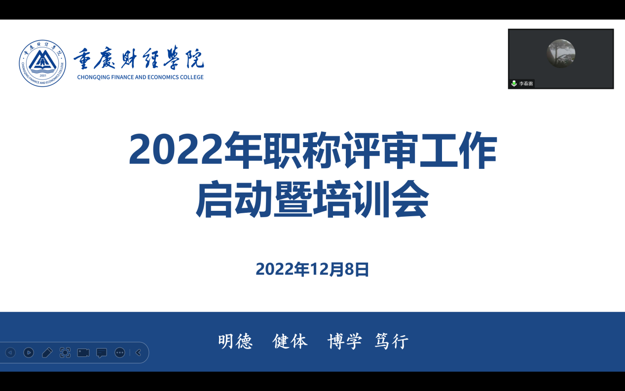 为顺利推进学校2022年职称评审工作,12月8日下午,学校2022年职称评审工作启动暨培训会在腾讯会议线上平台顺利召开。学校党委委员、副校长、职称改革领导小组执行组长李春雷出席会议,各二级学院、相关职能部门负责人及材料经办人员,共计30余人参加会议。会议由组织人事部部长谢付杰主持。