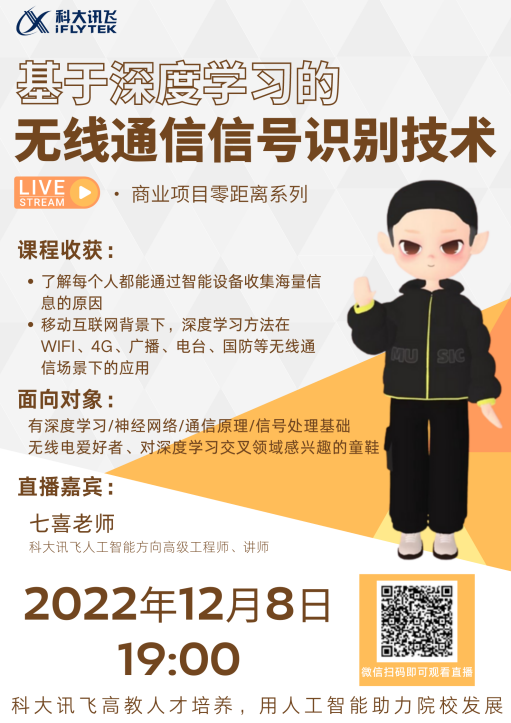 11月9日以来,讯飞人工智能学院(以后简称学院)联合科大讯飞特邀来自数十位行业专家开展了名为“工科人追梦之路”系列线上讲座。每周开展两场讲座并于每周一进行主题宣传,其中“专业提升”主题与“项目实践”主题交替开展,涵盖了大一至大三各年级学生的不同需求。截至目前共开展6场,超过1800人次观看。