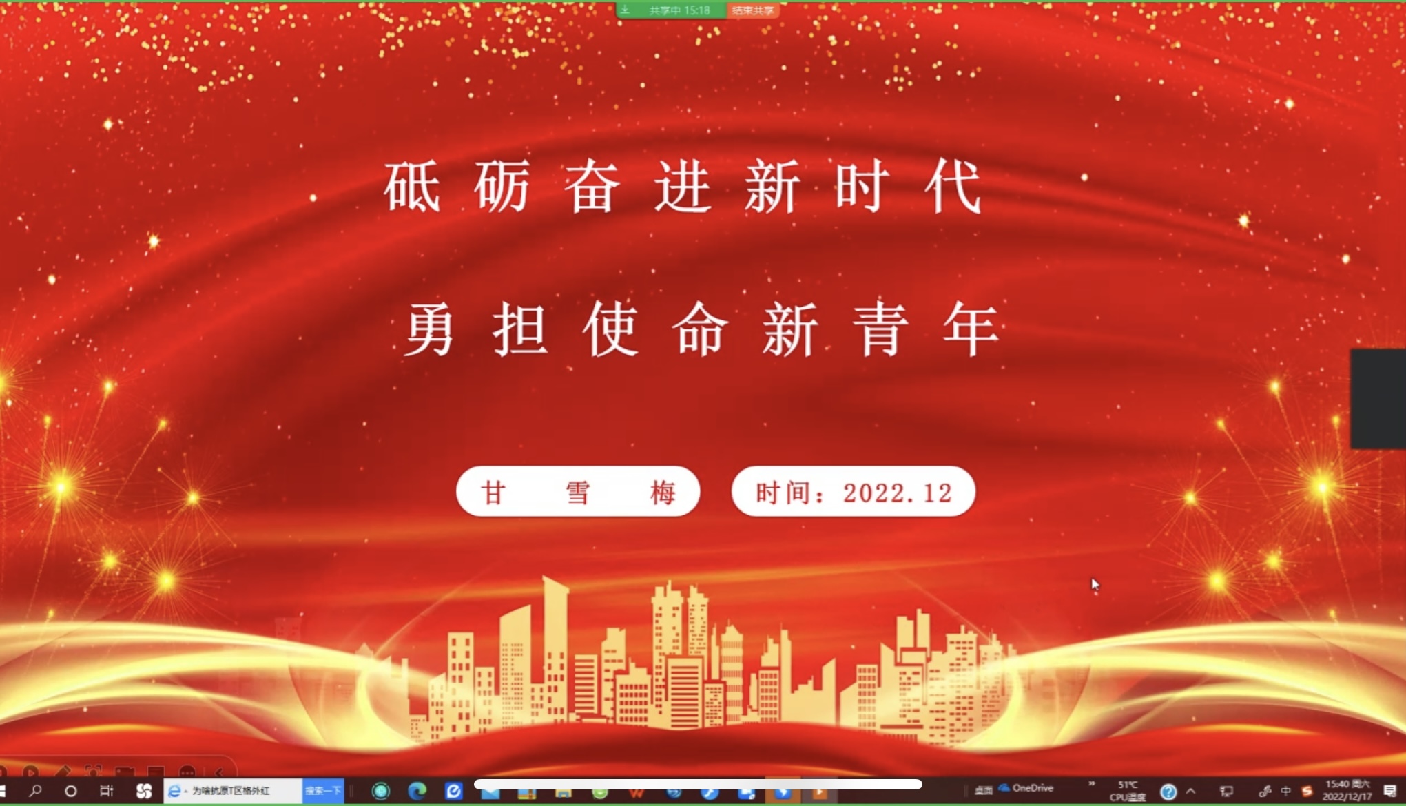 甘雪梅以“砥砺奋进新时代,勇担使命新青年”为主题,重点讲述了“新时代青年的使命内涵”“新时代青年在实现中华民族伟大复兴梦想的天然优势”“筑牢理想信念之基,努力提升青年素养”等内容,鼓励学员们树立理想信念,全面提升自身素质,为实现中国梦而不懈奋斗。