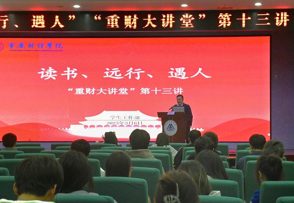 为让重财学子们更深刻地了解读书的意义、感受读书的魅力,鼓励大家成为向上向善有梦想、有热血、有行动的青年人。3月6日晚18:30,重财大讲堂第十三讲:“读书、远行、遇人”专题讲座在学术报告厅顺利举办。全国道德模范、全国向上向善好青年、全国抗击新冠肺炎疫情先进个人、青年学者徐茂应邀担任主讲。相关职能部门负责人及全校师生代表共计三百余人参加讲座,团委书记夏文瑞主持讲座。