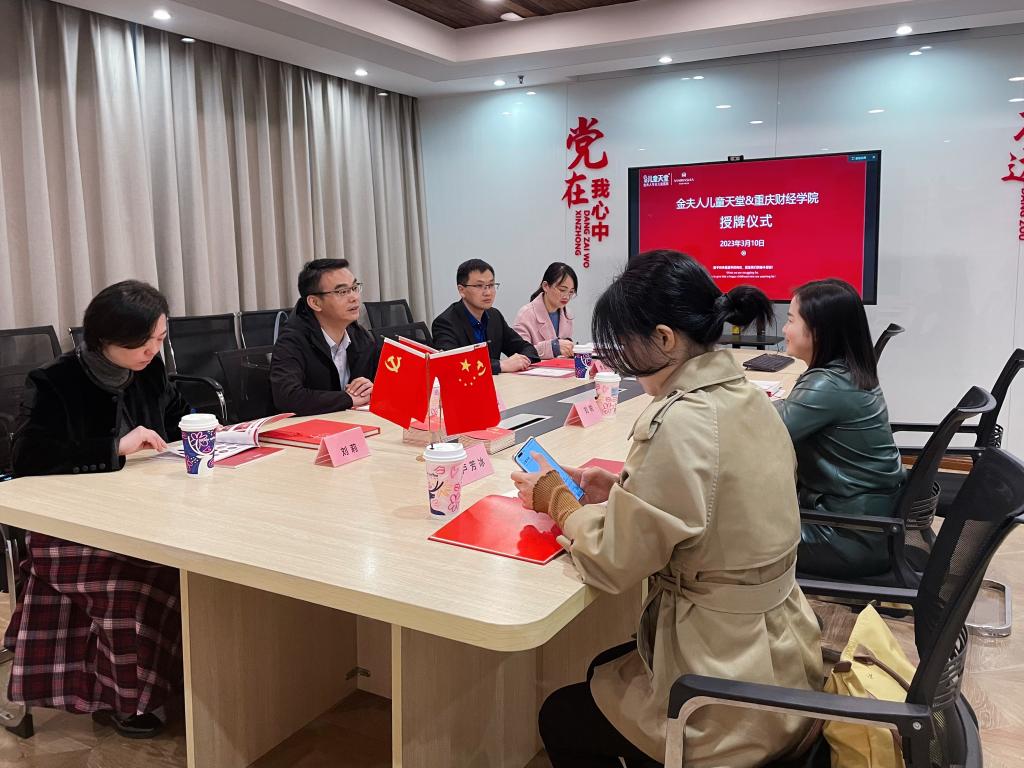 3月10日,我校与重庆儿童天堂摄影有限公司(以下简称:金夫人儿童天堂)举行产教融合基地签约暨授牌仪式。本次签约活动在儿童天堂本部渝中区金渝大厦举行。出席签约仪式的领导及嘉宾有:金夫人儿童天堂人事总监刘锐、金夫人儿童天堂校园招聘主管张庆,学校校长助理崔中山,经济学院院长李红平、党总支书记刘莉、院长助理刘春兰等。
