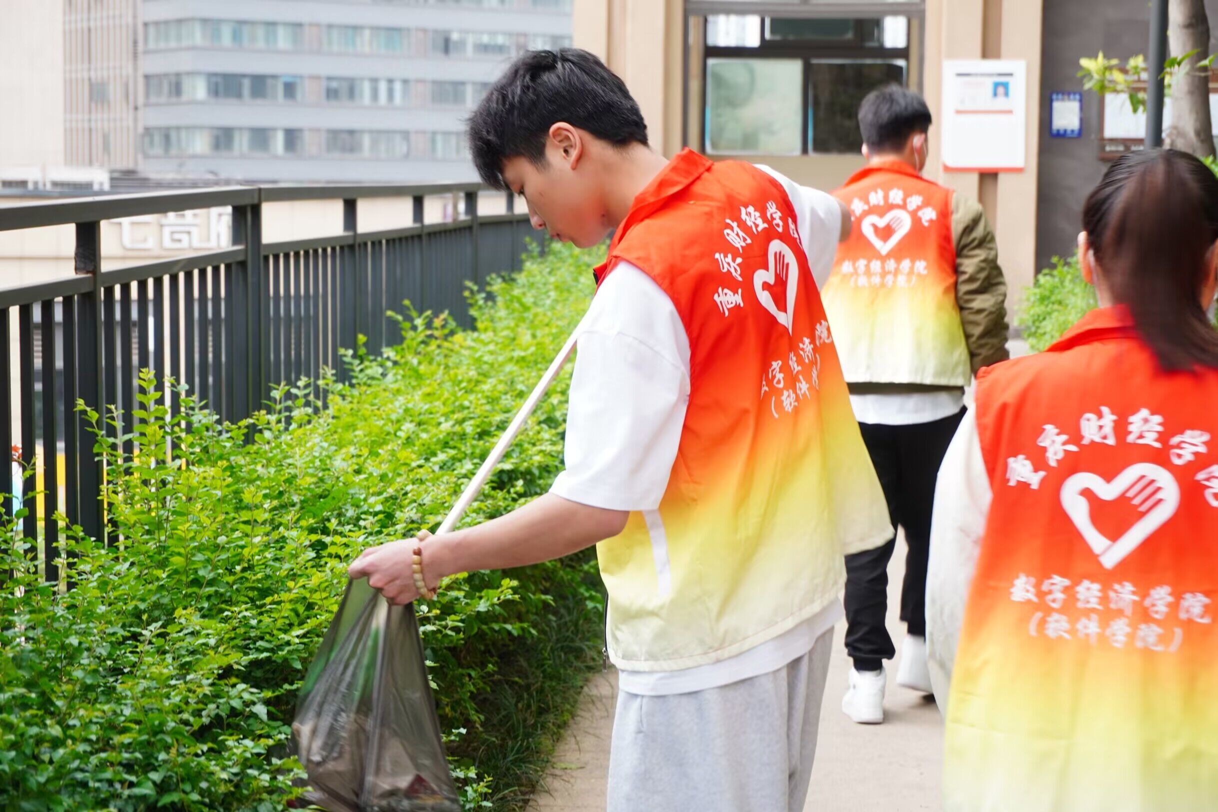在社区,志愿者们拿起清洁工具耐心细致地打扫卫生,帮助清洁社区卫生各个角落,捡拾草丛垃圾,共同为社区清洁贡献力量,打造绿色清洁的社区环境。