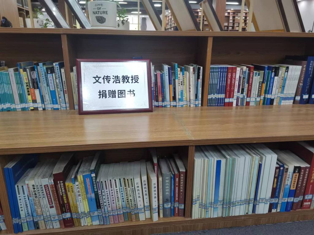 据悉,文传浩教授向我校图书馆捐赠的图书共计330余册,个人著作有《长江上游生态文明研究》、《地方高校应用经济学研究生培养理论与实践创新研究》、《地方高校应用经济学研究生培养理论与实践创新研究》、《地方高校应用经济学研究生培养理论与实践创新研究》、《长江上游生态文明研究》等,此外还有很多和他自己研究方向关于绿色发展、生态文明建设相关的科研书籍等,具有学术价值。