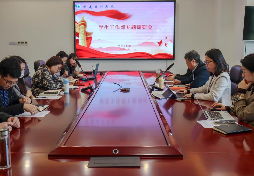 3月22日下午,校长吴华安、党委副书记房朝君、党政办主任宋湘琴、教务处处长黄兰及党群工作部部长李刚一行到学生工作部进行调研。学生工作部全体成员及各二级学院团总支书记参加本次会议,会议由学生工作部部长唐川川主持。