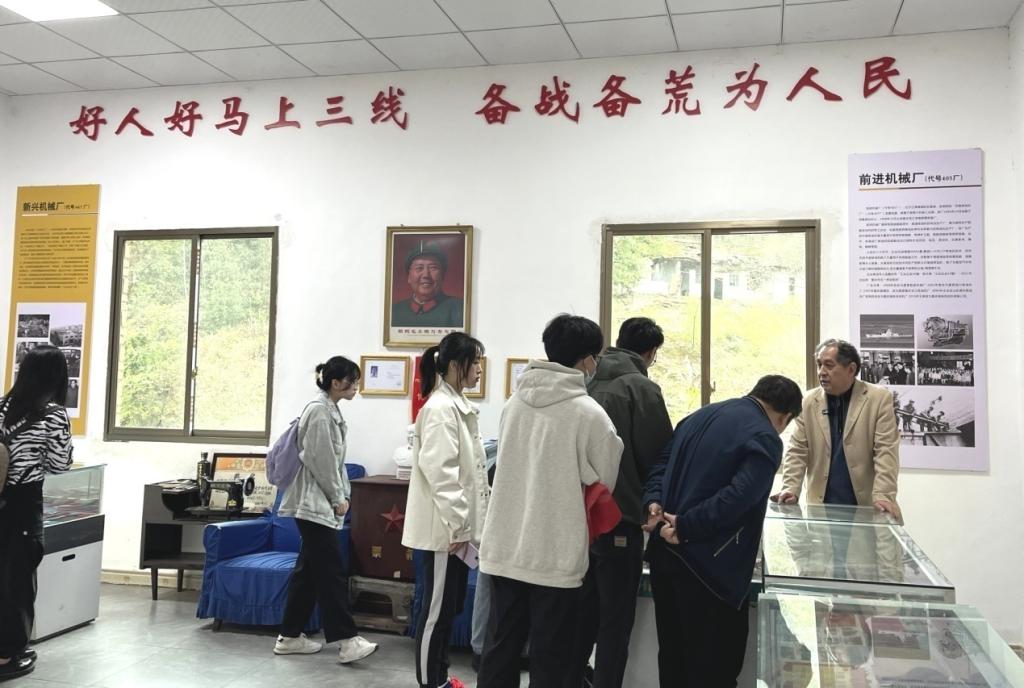 走进江津2383热火文创园重温三线建设这段历史,三线神秘的面纱缓缓揭开。作为三线建设亲历者和研究者何民权副秘书长,向调研团讲述了那段三线建设激情燃烧的岁月,并带领参观了文创园以及“重庆明泉三线记忆陈列馆”。在陈列馆中,一张张老照片,一件件老物件,一本本旧书籍,无一不在讲述三线建设的光辉历程,展示着全国五湖四海的三线人离开城市,告别父母,告别亲朋好友,打起背包,跋山涉水,来到江津风餐露宿、肩扛人挑,用艰辛、血汗支援江津三线建设的人们的不朽业绩。过往的岁月在眼前展现,使调研团更加深刻地感受到三线建设时期英雄先辈们“艰苦创业、无私奉献、团结协作、勇于创新”的三线精神,一座座工厂拔地而起宛如一轮瞩目的太阳冉冉升起,他们“献了青春献终身,献了终身献子孙”,为国防工业做出贡献,为江津工业发展打下了基础。
