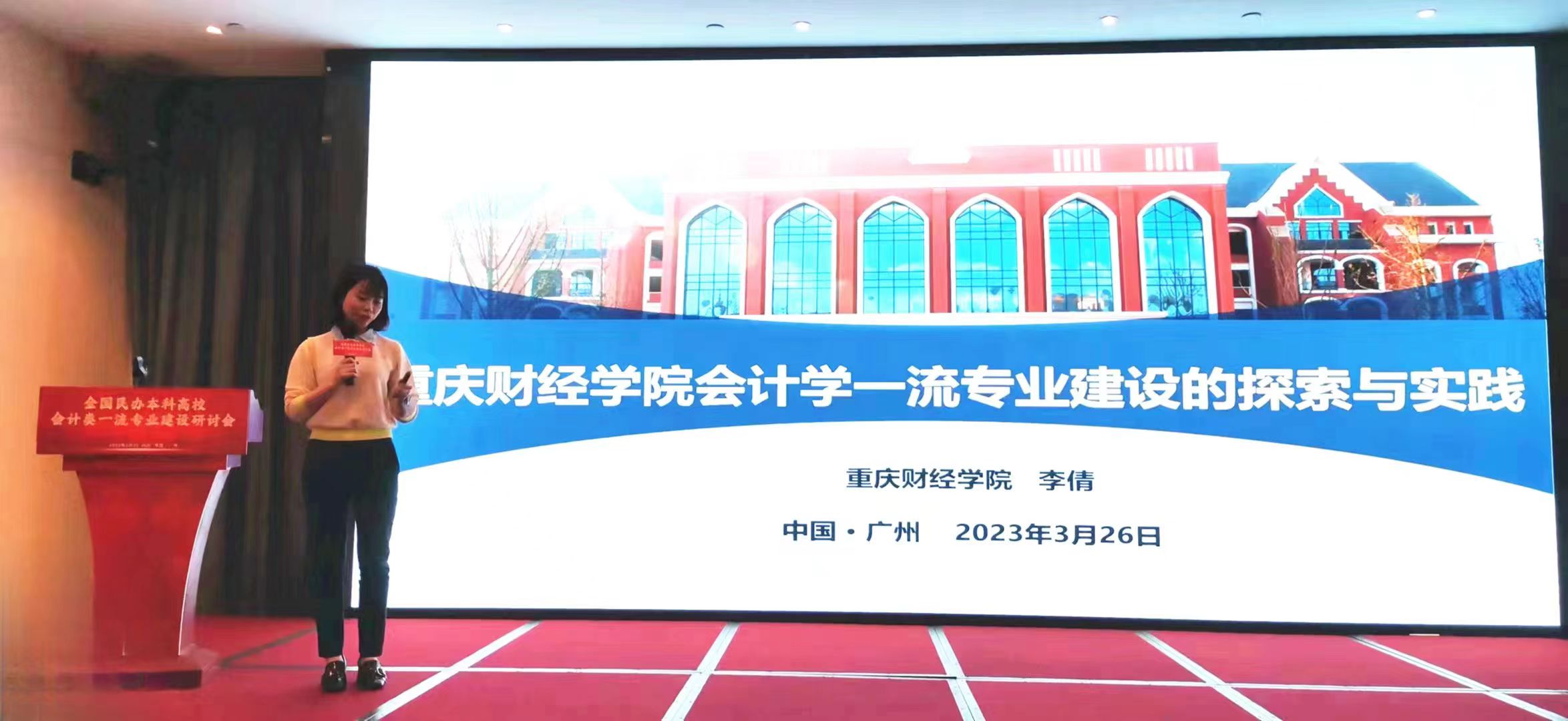 2023年3月25-26日,全国民办本科高校会计类一流专业建设联盟(以下简称“联盟”)成立大会暨全国民办本科高校会计类专业一流专业建设研讨会(以下简称“研讨会”)在广州南方学院召开。我校会计学院李倩副院长参会并在研讨会上进行主题发言。