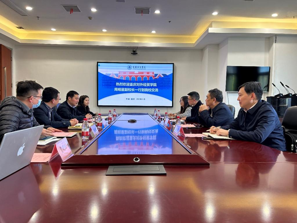 3月28日,重庆对外经贸学院周明星副校长、科研处处长彭成、学科建设办公室主任彭霄等一行4人来我校调研交流博士后科研工作站建设发展与学科科研工作。