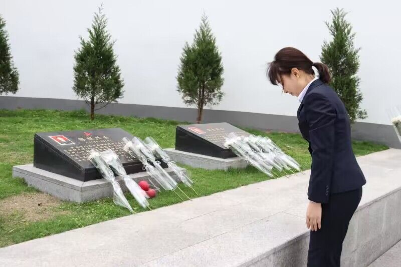 在庄严的革命烈士纪念碑前,范莉汶书记带领党员同志们重温了入党誓词,并带领东城社区和会计学院的党员及团员垂首默哀三分钟。默哀后,50余名参与人员依次向陵园的8位烈士敬献鲜花,鞠躬致敬。通过追忆历史,缅怀先烈,党员和团员们加深了对爱国主义精神的了解与认识,增强了他们的责任感和使命感。