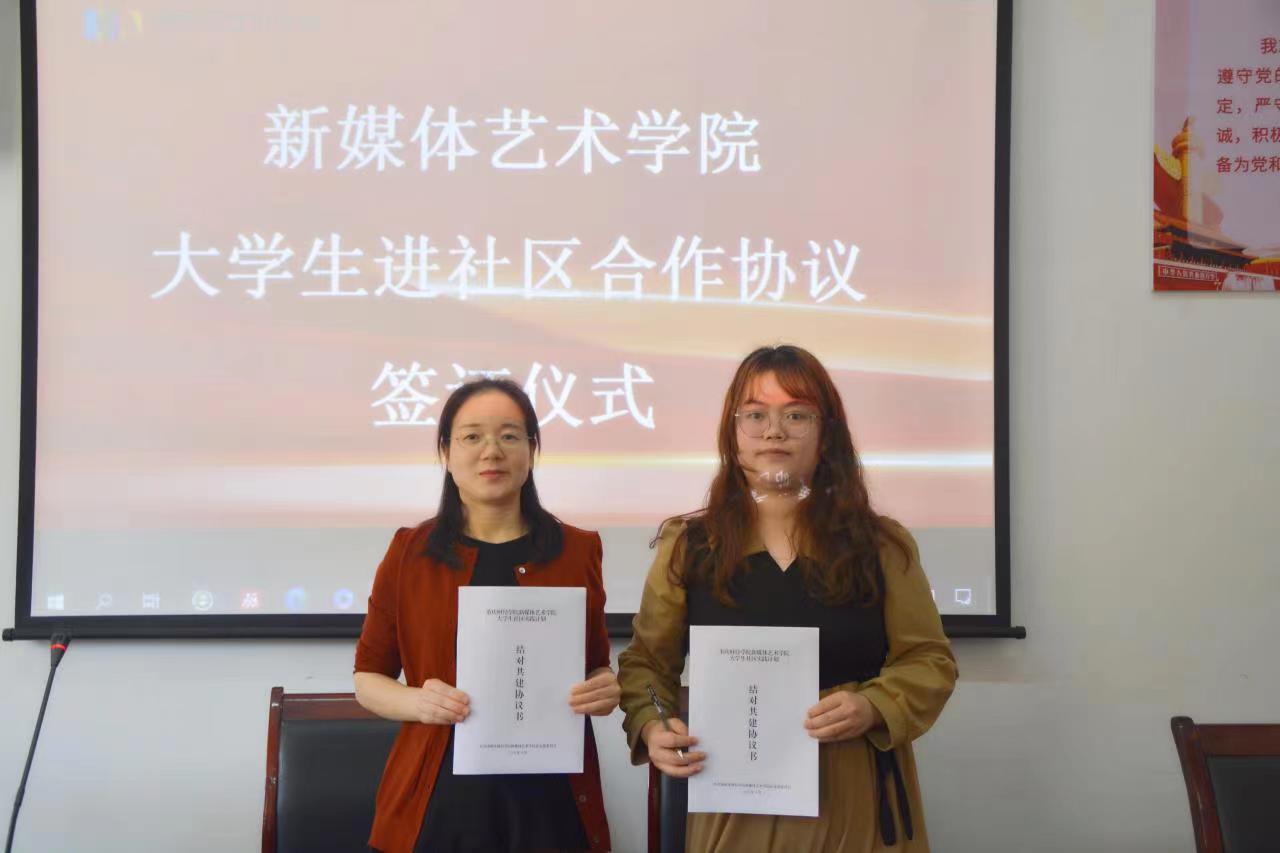 为深入贯彻落实习近平总书记关于青年工作的重要思想,扎实开展高校青年志愿者社区志愿服务行动,引导青年学生走进基层,积极参与和服务基层社会治理,4月11日下午,新媒体艺术学院与圣灯山镇跳石社区签订了“大学社区实践计划”结对共建协议。