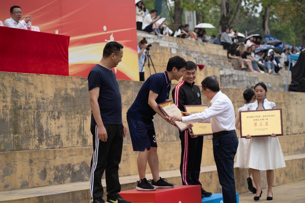 闭幕式上,总裁判长杨政宣布了运动会获奖名单并举行了隆重的颁奖仪式。在本次运动会中,会计学院、软件学院、金融学院分别荣获学生团体总分前三名;软件学院工会、物流工程学院工会、讯飞人工智能学院工会分别荣获教职工团体总分前三名;同时,获得学生优秀组织奖的有财富管理学院、金融学院;获得教职工优秀组织奖的有马克思主义学院工会、会计学院工会、公共管理学院工会。连绵不断的掌声,表达出大家对获奖人员由衷的祝贺。