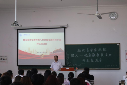 为深入贯彻落实习近平法治思想,特别是习近平总书记关于加强宪法学习宣传教育的系列重要指示精神,进一步在青少年学生中普及宪法知识、弘扬宪法精神、树立宪法权威,为进一步加强学校领导深入基层联系学生工作,切实了解学生学习、生活等各方面情况,516日上午,校长吴华安教授与联系班级金融学院2021级金融科技12班在教学楼1407教室召开了师生交流会,班级辅导员及全体同学近100人参加会议。
