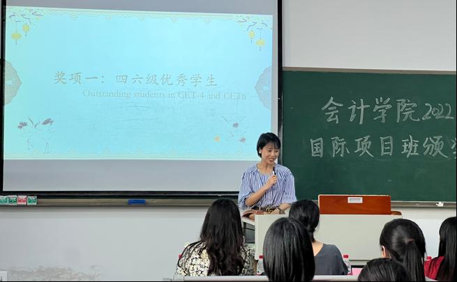 会上,李倩向一直奋斗在教学、科研、服务岗位上的老师表示感谢,对ACCA国际项目班的获奖同学们送上诚挚的祝贺。李倩向大家介绍了ACCA国际项目班的办学宗旨以及过去九年来取得的优异成绩,鼓励同学们要把握机会,以更高的标准要求自己,踔厉奋发,不负韶华,在未来实现人生价值。