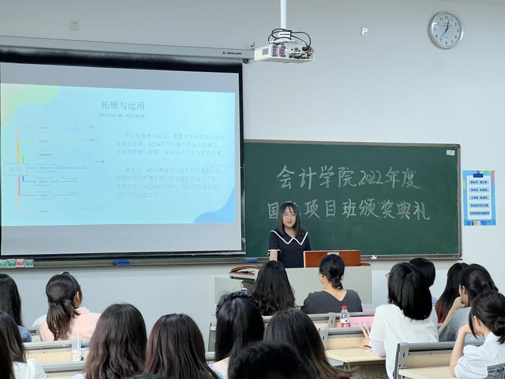 5月17日,我校会计学院2022年度国际项目班颁奖典礼在教学楼1501隆重举行。出席本次活动的嘉宾有ACCA成都推广传讯主任王怀蜀女士、楷柏财经高校项目运营总监蔡洁、楷柏财经重庆地区项目运营主管李春凤、楷柏财经驻校班主任何花丽,我校会计学院副院长李倩、会计学教研室主任刘贤洲以及会计学院ACCA各班辅导员。我校2019-2022级ACCA国际项目班学生参加了本次活动。