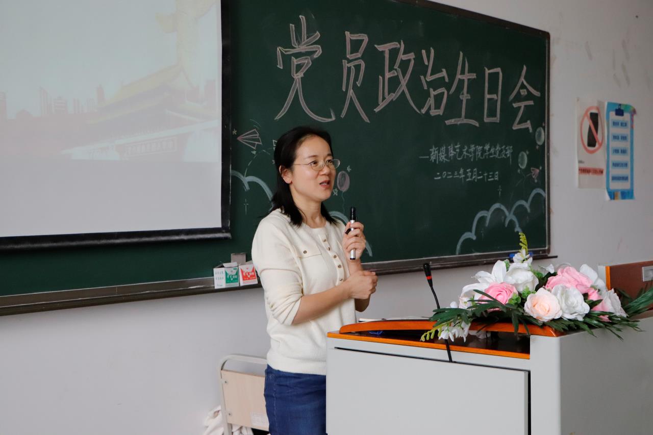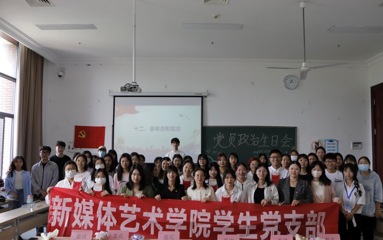 为进一步坚定党员政治信仰,加强党员担当责任与使命的信心和力量,锤炼党性,勿忘入党初心,永葆共产党员本色。5月23日,新媒体艺术学院学生党支部在1514教室开展了党员集体政治生日会活动。学院党总支负责人甘雪梅同志、学院团总支书记朱明明同志、学生党支部书记周利娜同志等六位教师党员及全体学生党员参加活动。