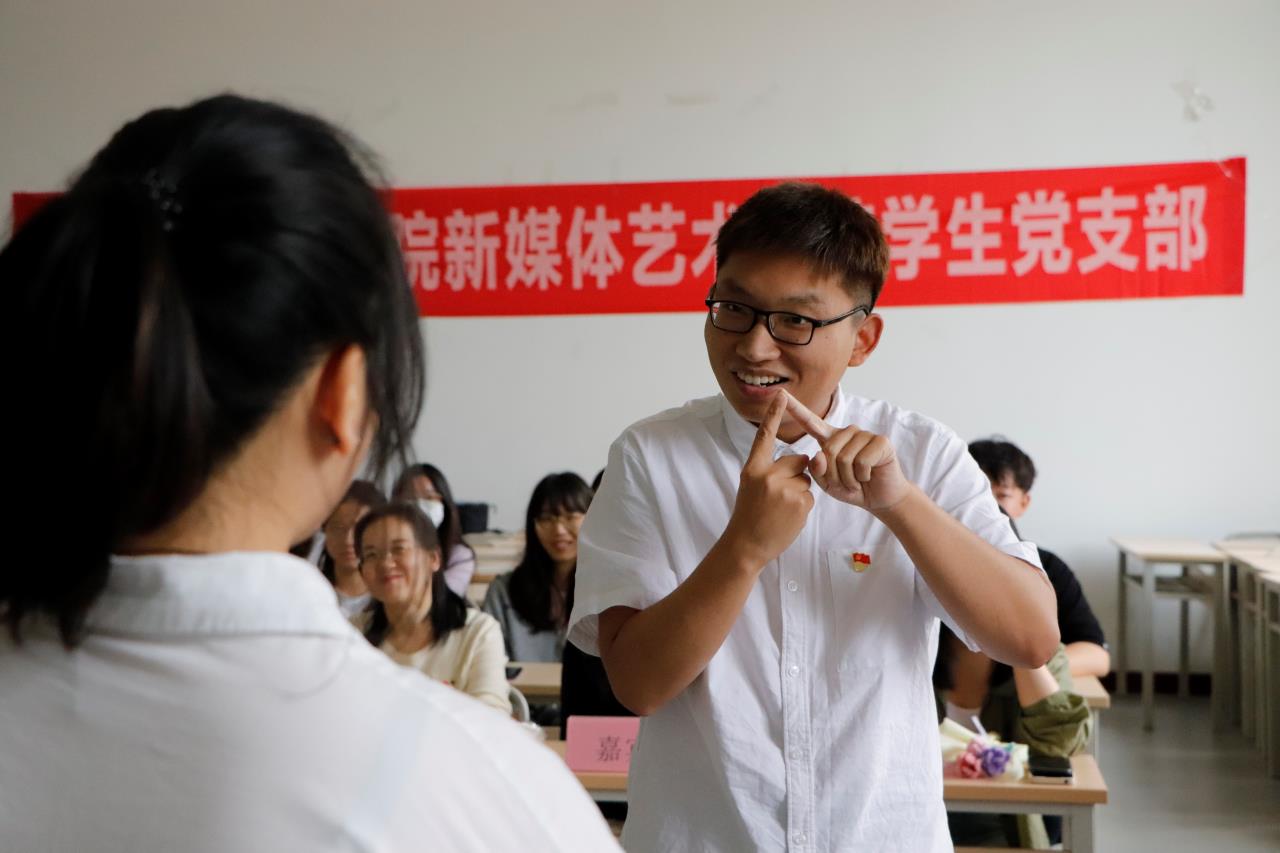 随后,学生党员代表向此次过政治生日的教师和学生党员赠送生日贺卡,并向他们表达了组织的关怀与祝福。愿各党员手持贺卡,承载美好期望与祝愿,在今后的生活中坚持学习,不断充实自己,以更好地担当起自己的责任与使命。在组织的祝福下,王艺、朱明明等同志郑重地依次许下政治生日愿望,她们希望国家繁荣昌盛,早日实现社会主义现代化强国;希望党能永葆青春,强盛不衰;希望新媒体艺术学院的同志们承接先辈的奉献精神为人民创造福祉。