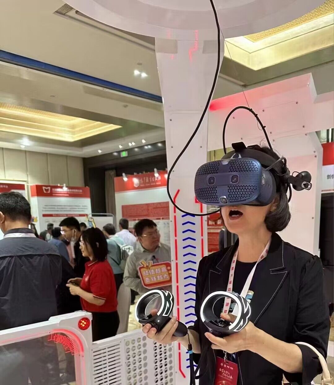 章新蓉教授和李倩副院长在会上体验元宇宙实验,参与各实验室空间穿越教学,有利于推进我校会计学学科和未来会计实验建设。