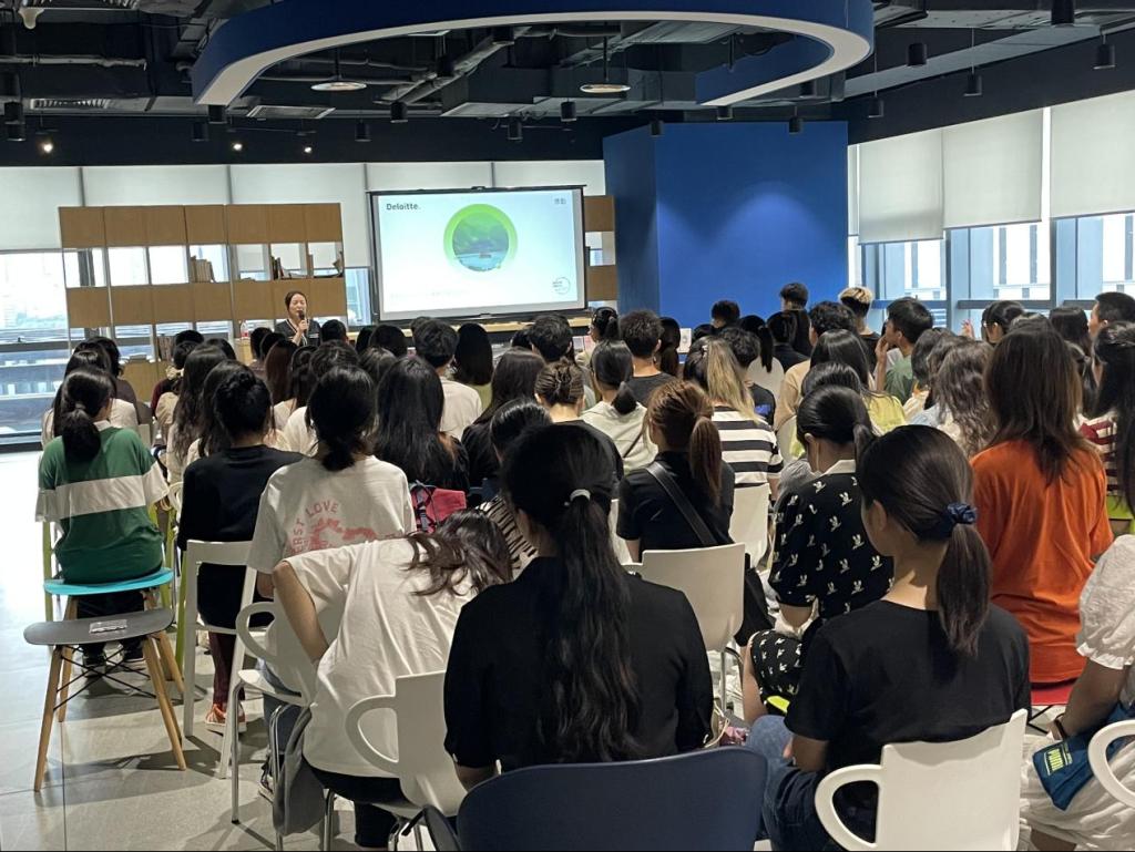 德勤全球交付中心税务及商务咨询总监周颖、管理咨询经理孙谭磊、风险咨询经理李一桐依次分享了所在部门的业务范围及对入职人员的相关要求,鼓励大家学好ACCA,争取早日进入德勤。在面对面交流环节,我校学生积极与企业人员探讨财会专业发展前景。