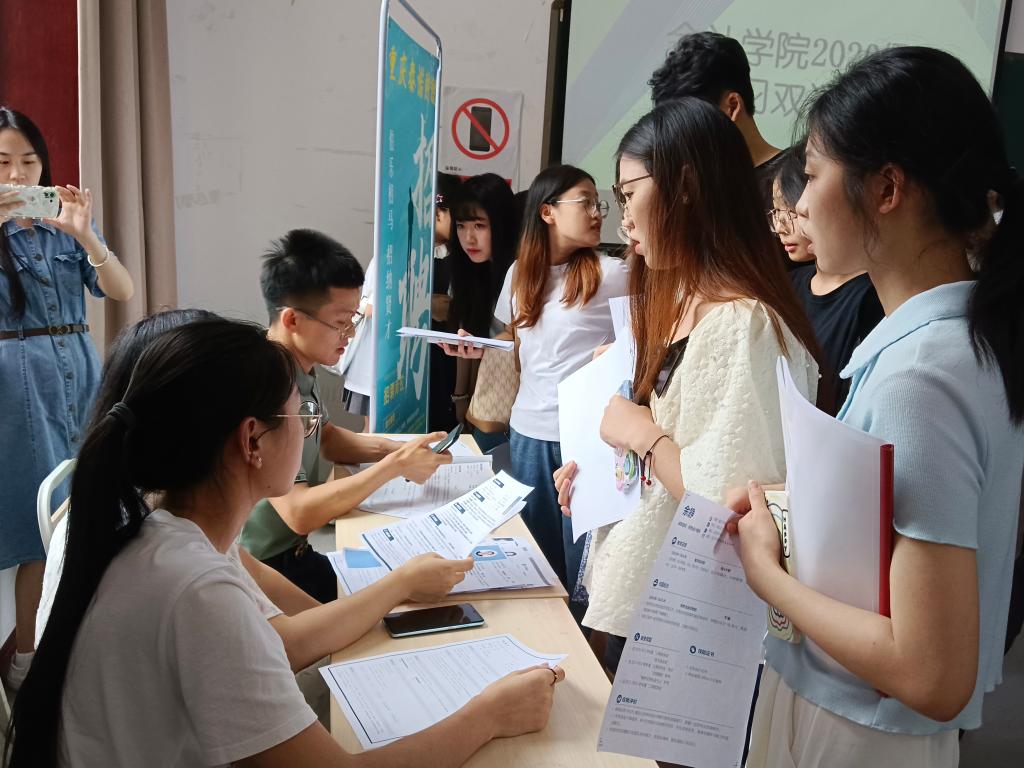 为进一步落实共青团“大学生实习‘扬帆计划’”提前搭建2024届毕业生实习平台,加强校企合作交流,增强学生就业意识,6月9日下午,我校会计学院、财富管理学院在教学楼1502教室开展2024届暑期实习双选会。