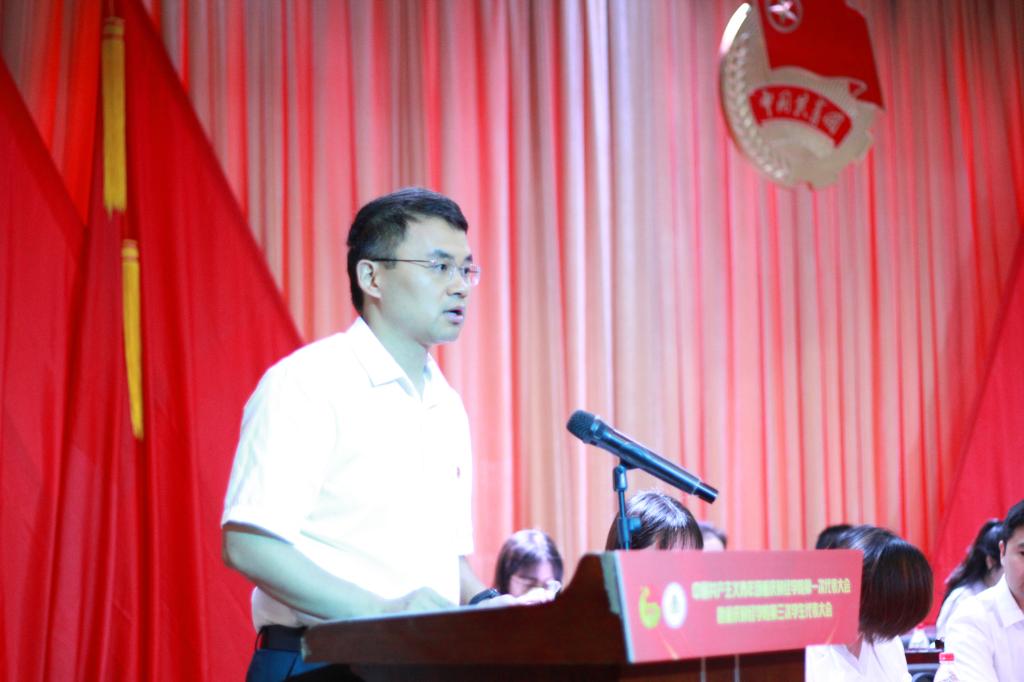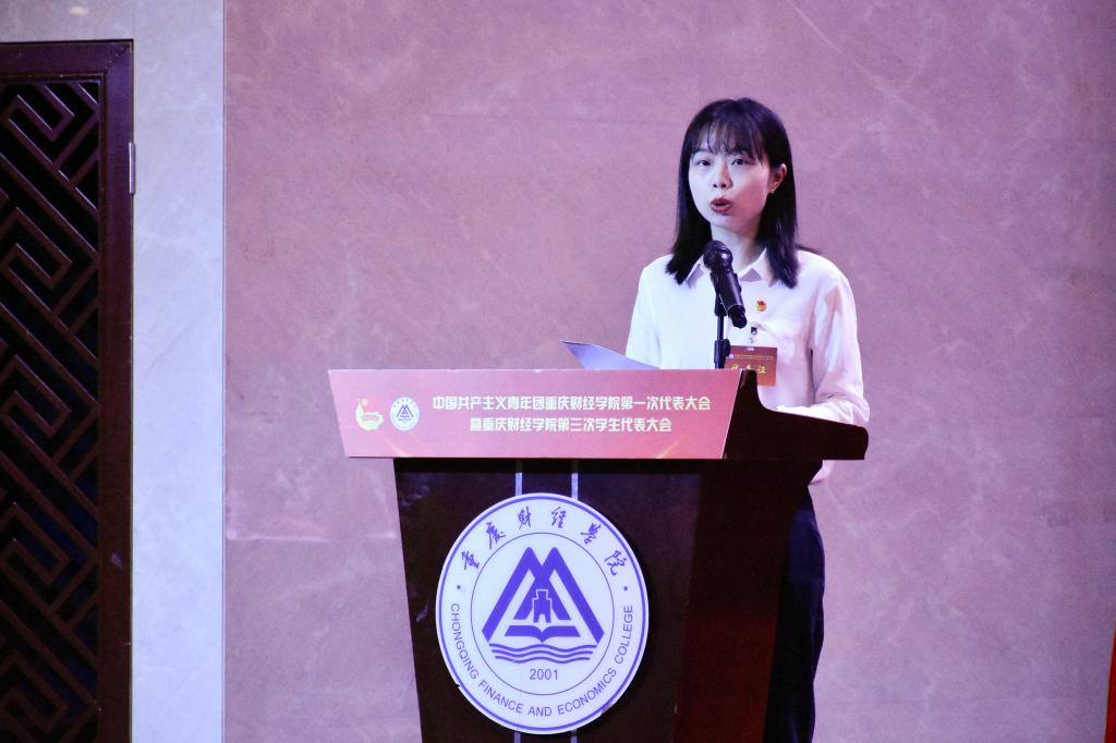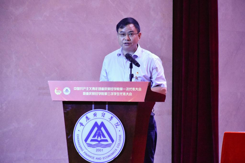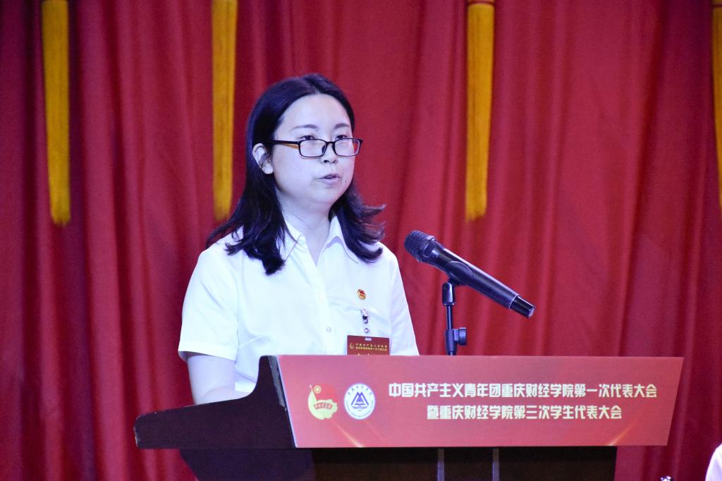 团市委副书记张珂代表团市委发表重要讲话。张珂同志代表共青团重庆市委、重庆市学生联合会向大会的召开表示热烈的祝贺,并充分肯定了重财共青团的工作成效。张珂同志指出,近年来,在学校党委的坚强领导下,学校共青团紧紧围绕立德树人根本任务,奋力改革创新,着力打造“青创训练营”“非遗进校园”等一系列特色团学工作品牌,为学校改革发展作出了积极贡献。