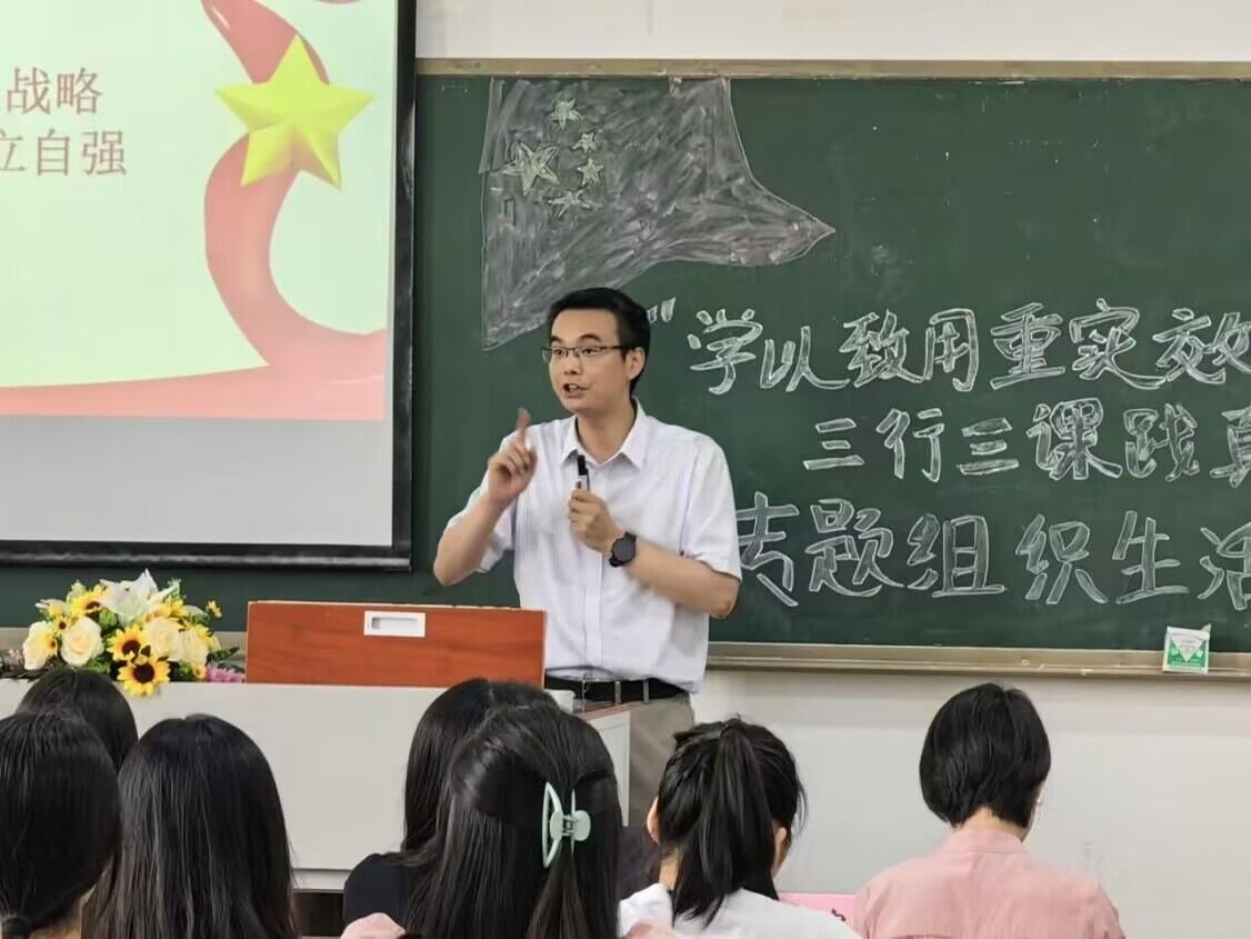 最后,崔中山助理激励师生党员全面落实党的教育方针,自立自强、攻坚克难,听党话跟党走,勇做走在时代之前的奋进者、开拓者,为学校发展贡献青春力量,为中华民族伟大复兴梦不懈奋斗!