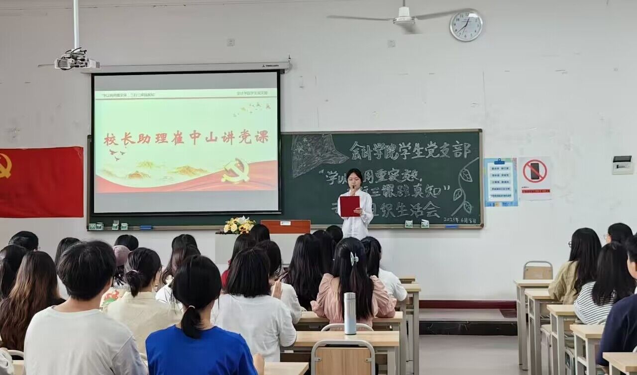 为深入学习贯彻习近平新时代中国特色社会主义思想主题教育,6月9日中午,校长助理崔中山在教学楼1413教室为会计学院教工党支部、讯飞人工智能学院教工党支部、会计学院学生党支部师生党员讲授了题为《实施科教兴国战略,强化现代化建设人才支撑》的专题党课。