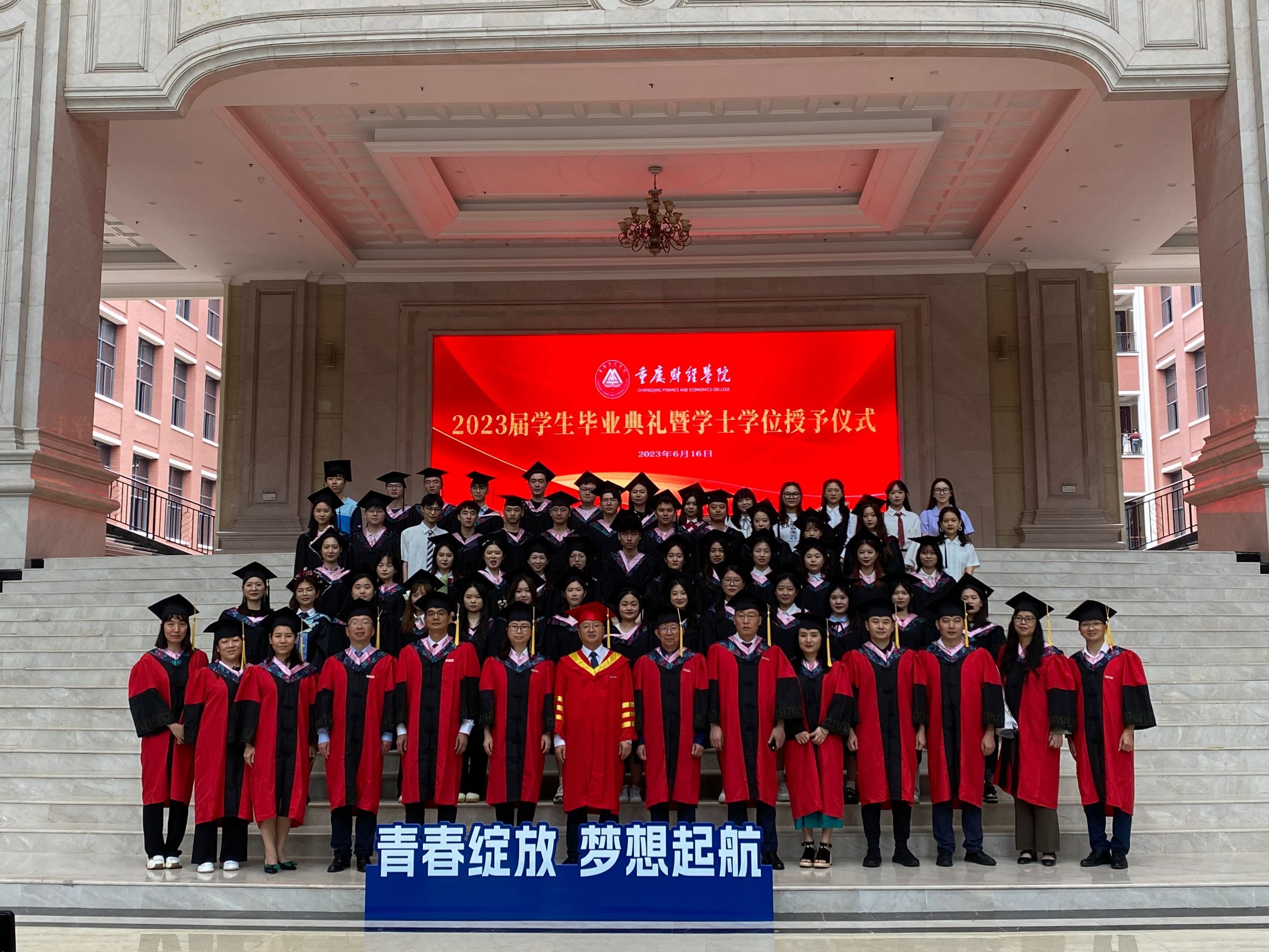 2023届学生毕业典礼暨学士学位授位仪式在悠扬的校歌——《同心铸辉煌》中圆满完成。分别不是结束,而是为了更好的重逢。愿各位毕业学子不忘初心、牢记使命、奋发图强,携幸福常回“家”看看。雏鸟离巢初展翅,今朝破茧终成蝶。前路漫漫,且走且看,祝各位鹏程万里,扶摇直上。