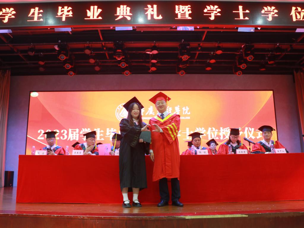 在热烈的掌声中,毕业生代表周心怡同学上台发言,回忆起在校园的种种美好瞬间,尽显对母校的不舍和留恋,表达了对母校与恩师的感谢之情,希望大家以梦为马,不负韶华,绚烂绽放青春之花。毕业生家长代表陈继业为2023届毕业生送上了最诚挚的祝福,肯定了同学们一直以来的努力,并对全校上下表示由衷地感谢,希望众学子懂感恩,知良善,去奋斗,不怕苦不怕难,乘风破浪,直挂云帆。教师代表郭静林副教授对各位毕业生深情寄语,四年来见证了同学们的成长和蜕变,而今后的路要自己走,要善于为自己“投资”,望铭记校训,砥砺前行,自强不息。