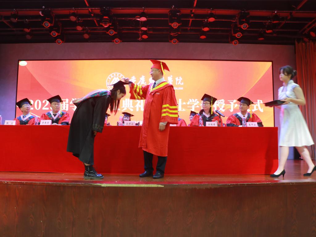 6月16日上午9时30分,我校2023届学生毕业典礼暨学士学位授位仪式在学术报告厅顺利举行。出席活动的领导及嘉宾有全体校领导、学位委员会委员、各二级学院党政负责人、相关职能部门负责人以及教师代表和家长代表,全体2023届毕业班辅导员和毕业生通过线上线下的方式参加本次活动。会议由党委副书记房朝君主持。