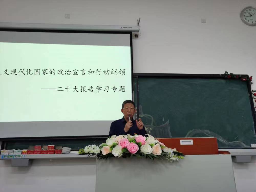 副校长沈民围绕报告的主题、意义、总体结构作了详细讲授。对开辟马克思主义中国化时代化新境界、新时代新征程中国共产党的使命任务、全面建设社会主义现代化国家的重大任务进行深刻讲解。结合二十大报告,副校长沈民指出,全体党员同志要从供给端、需求端、未来预期对当前重庆市的经济形式进行分析,并结合以上三个方面的内容对当前学校面临的境况以及未来发展作了详细说明,副校长沈民真切期望每位教师要对学校未来发展充满信心,要扎实做好教学、科研与学生培养工作,要围绕合格评估把工作做细、做实、做得更规范。从课程建设、人才培养、产教融合、科教融合等方面把党的二十大精神融入事业发展之中。