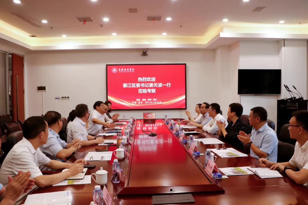 为进一步深化校政合作,6月29日,綦江区委书记姜天波一行6人赴我校考察交流,新鸥鹏集团董事长杜积西、原重庆工商大学校长(澳门新葡京博彩战略委员会专家)王崇举、校长吴华安、党委书记张毅及其他校领导陪同。