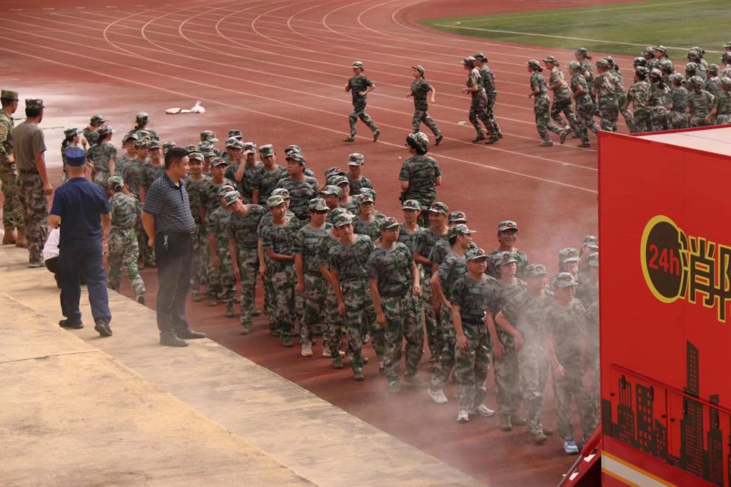 紧接着,由20名同学出列体验消防水枪,将水带扛至肩头,通过对其的了解和专业人员的指导使用其完成灭火。最后,数名同学排队进行了火灾逃生模拟,模拟车内烟雾弥漫,参与学生纷纷低头有序逃离,安保处也在旁边及时接应学生逃离并将其搀扶下车,通过全体人员的通力合作顺利完成了此次演习。