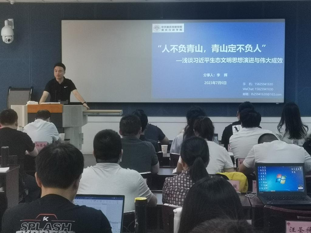 为推动学习贯彻习近平新时代中国特色社会主义思想走深走实,教育引导党员、干部、哲学社会科学研究骨干从思想上正本清源、固本培元,不断提高政治判断力、政治领悟力、政治执行力,7月6日,中共重庆市市委党校哲学社会科学教学科研骨干理论研修二班(第30期)开展学员自主讲坛活动。我校公共管理学院副院长,校级科研创新团队负责人、特聘教授李辉做主题报告。