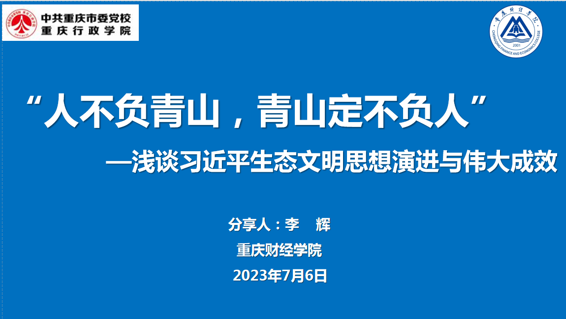 习近平生态文明思想是习近平新时代中国特色社会主义思想的重要组成部分,是马克思主义中国化的原创性理论成果。李辉教授将此次党校学习成果与自身研究方向进行有机融合,以《“人不负青山,青山定不负人”—浅谈习近平生态文明思想演进与伟大成效》为题,从习近平生态文明思想形成逻辑、内涵演进、最新进展以及伟大成效等四个方面,全面系统解读了习近平生态文明思想“从哪里来”“怎么来”“到哪里去”“成效如何”等关键内容。报告紧密结合主题教育要求,进行了主题鲜明、重点突出、结构清晰的专题讲授,受到班主任、主持人以及全体学员的一致好评。