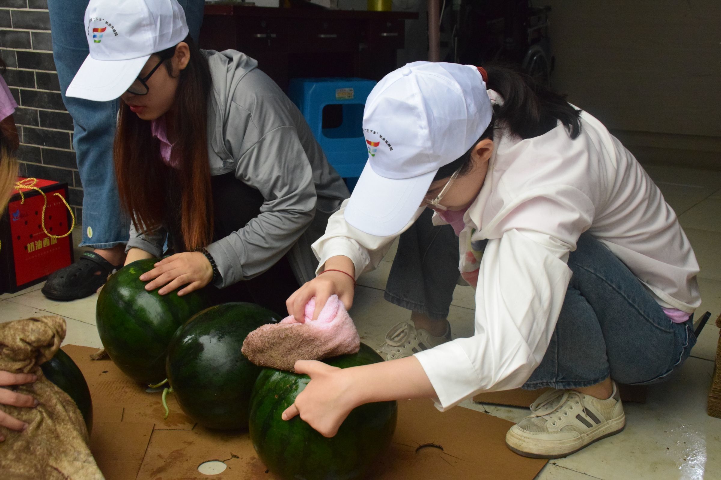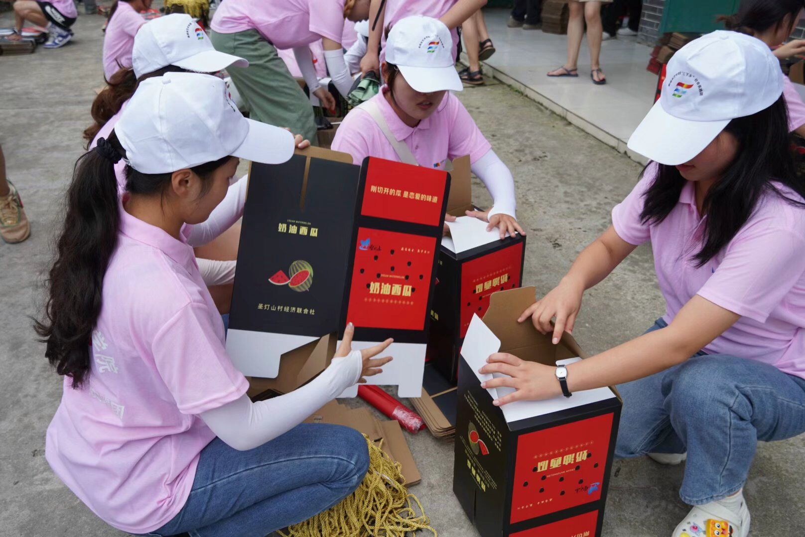 观察团成员们团结协作,四人一组,洗瓜、装箱、填底、系带、封条,一系列流程从手足无措到有条不紊。通过三天的打包装箱,4000斤圣灯山奶油西瓜全部整整齐齐“安家落户”,整装待发。看到几天来的劳动成果,同学们纷纷表示:此次活动既体验了劳动的艰辛不易,也体验了劳动带来的喜悦和成就感。同时也激发了同学们对乡村工作的浓厚兴趣,看到了乡村就业的希望和前景。许多同学立志要返乡就业创业,为乡村振兴贡献自己的力量。