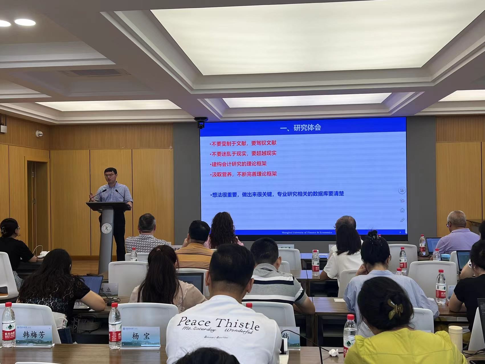 8月4日至5日,研修班邀请上海财经大学会计学院院长,教育部首批“全国高校黄大年式教学团队”负责人、上海市“为人、为师、为学”先进典型团队负责人,首批教育部哲学社会科学实验室(培育)负责人,教育部长江学者、财政部“会计名家”靳庆鲁教授,围绕会计理论框架与研究方法、国家自然科学基金项目申报、会计论文分享与指导等展开指导。