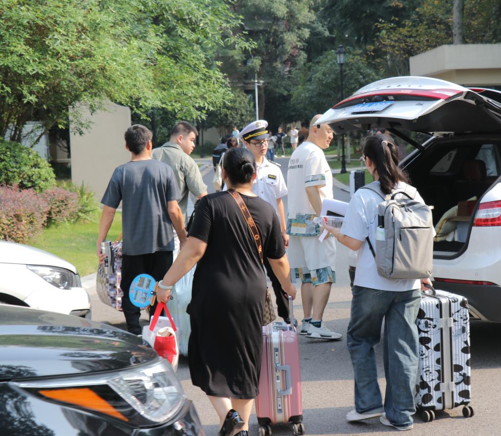 在校园里,鲜艳的五星红旗、社会主义核心价值观、校徽校训造型、校院特色行架等帮助同学们树立正确学习目标,“我们开学啦”校园巴士、照相机等打卡点带领同学们回归校园回归学习。在专升本迎新现场,学生志愿者们热情礼貌、耐心引导,通过细致入微的服务,确保新同学有序报到。保卫处全员上岗和新生家长相互配合,不仅提高了校内治安巡逻效率,同时还维持了校内校外的交通秩序、切实保证了同学们的出入安全。