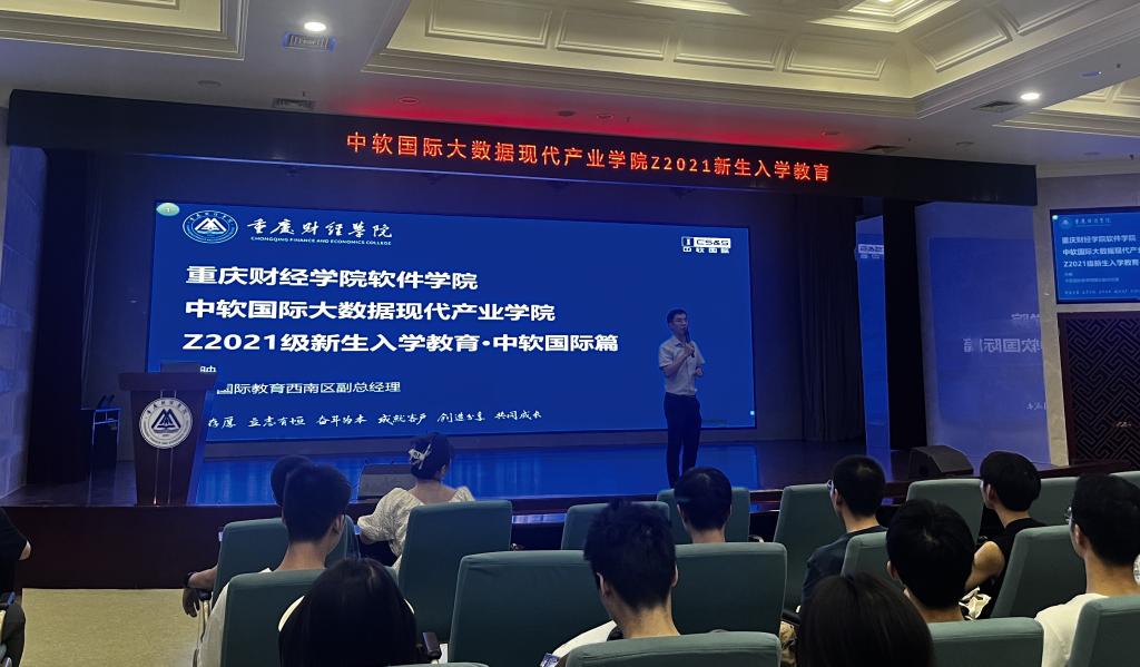 为帮助2021级专升本新生深入了解行业发展前景准确把握行业岗位需求增强专业学习自信度9月14日,我校中软国际大数据现代产业学院开展专升本新生入学教育专题讲座,中软国际教育西南区域副总经理朱映、软件学院副院长夏祥礼、党总支副书记刘有沛、院长助理况书梅专升本辅导员参加
