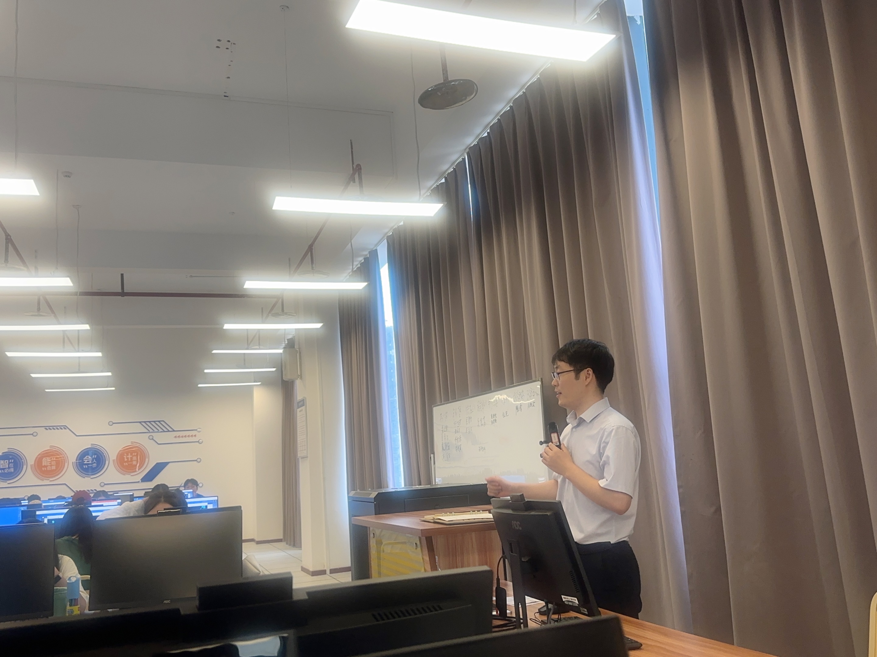 为促进产业学院发展,深化落实产教融合,9月7日-22日,我校智能会计产业学院顺利开展“AIE智境”综合实践教学课程,本次课程由新道科技股份有限公司提供教学平台支持,由教育服务事业部讲师肖宏伟、重庆分公司教学服务总监、高级信息化工程师李志良主讲,新道驻校导师朱小芳全程跟班辅导。