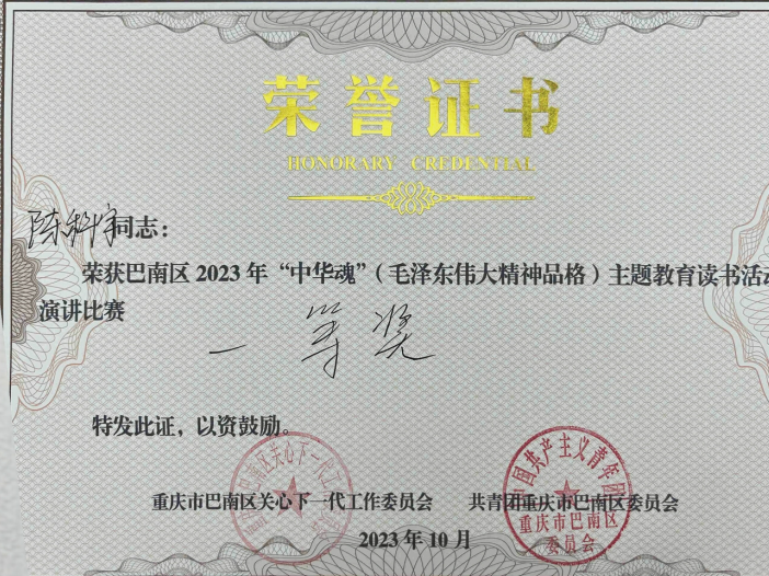 【喜报】我校公共管理学院学生荣获巴南区主题演讲比赛一等奖