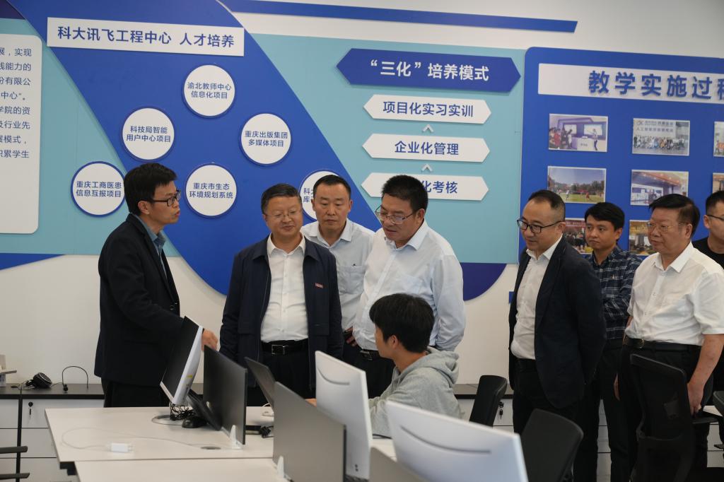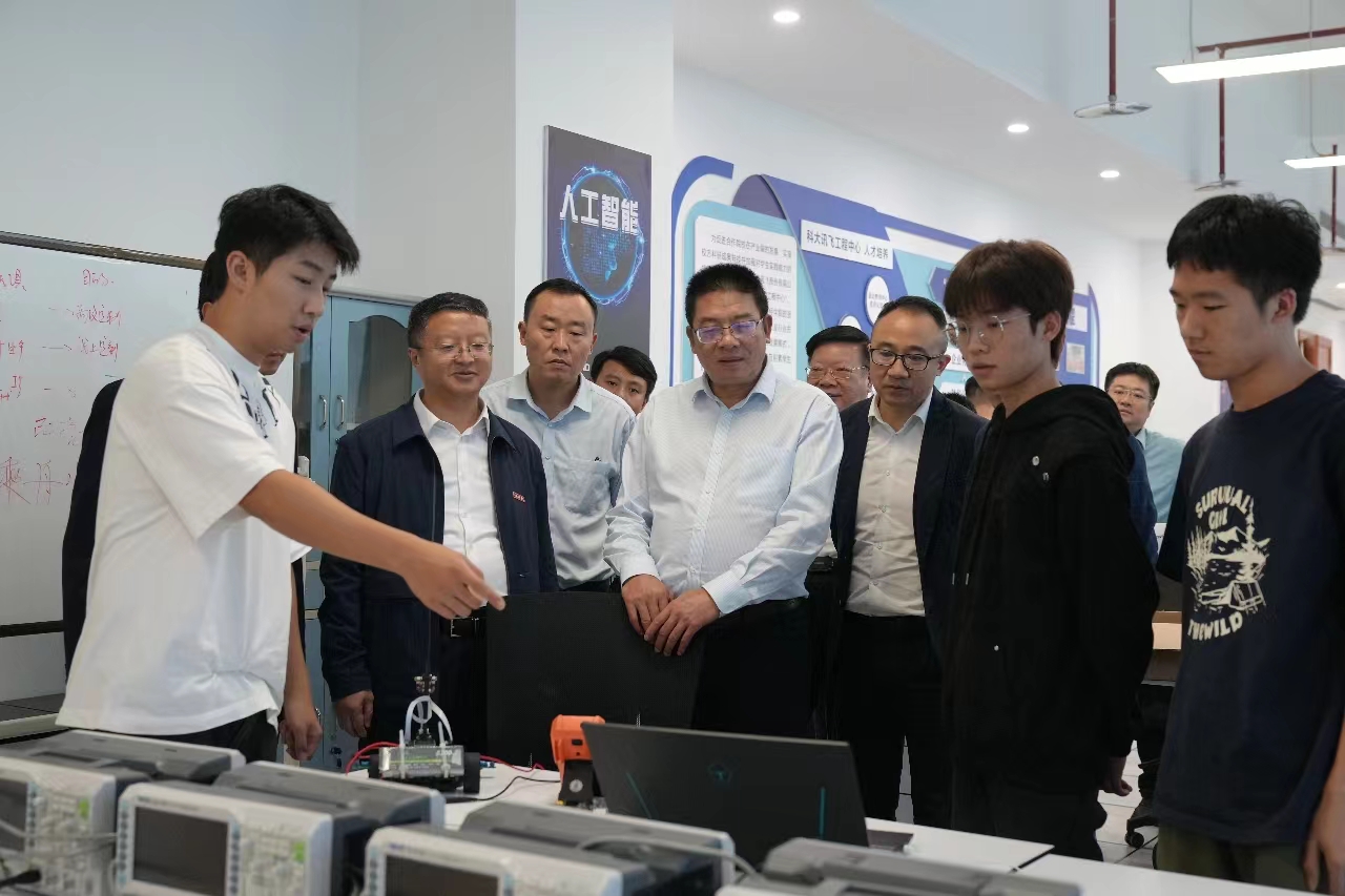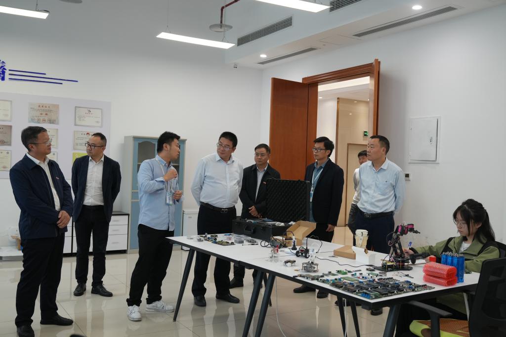 冯在文一行深入我校教学一线、实验实训中心、科教城展示中心,围绕学生学习内容、学习环境、学习成果调研交流,赞扬我校学术氛围浓厚,学生精神面貌积极向上,表达了进一步加深合作的意向。