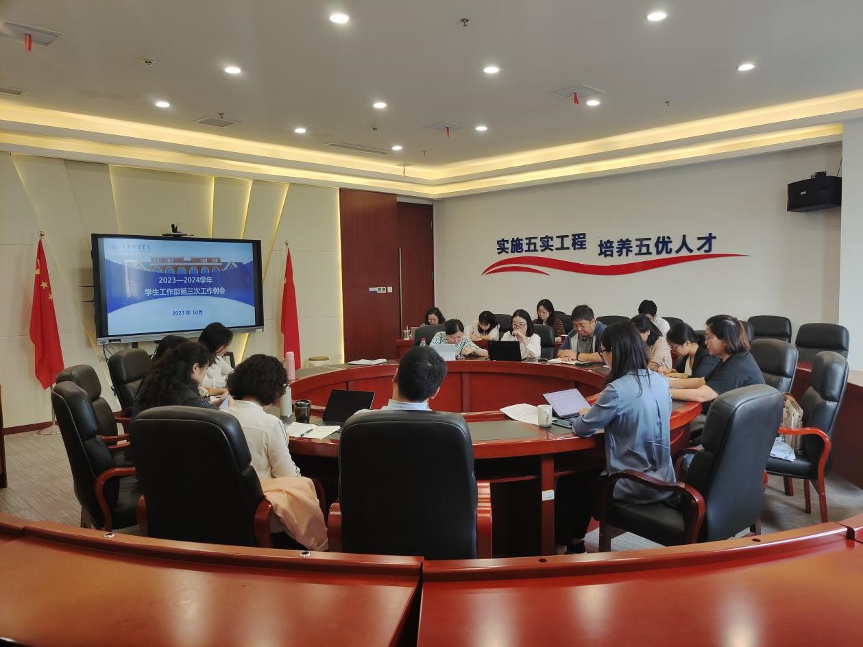 10月17日上午,我校在行政楼2302会议室召开2023-2024学年第一学期第三次学生工作例会,就近期学生工作做汇报交流。党委副书记房朝君,学生工作部相关科室成员和二级学院学生工作负责人参加会议。会议由学生工作部部长唐川川主持。