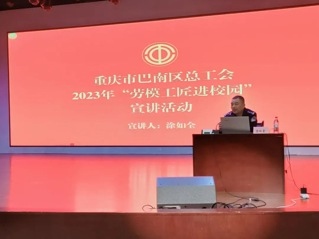 巴南区总工会“劳模工匠宣讲团”成员、重庆市先进工作者、全国示范性劳模和工匠人才创新工作室带头人、巴南区公安分局情报信息支队队长、巴南区反诈骗中心主任涂如全围绕“防范电信网络诈骗”主题,向同学们介绍了当前电信网络诈骗背景、发案形势和电信网络诈骗的定义,并通过分析高发案例,总结了电信网络诈骗的共同特点。涂如全主任还别出心裁地运用以案为鉴的形式,向同学们普及反诈骗知识以及预防对策,有效地提高了同学们的反诈骗意识,为同学们敲响了反诈警钟。他精彩的宣讲引发了大家的一次次共鸣,现场数度响起热烈掌。