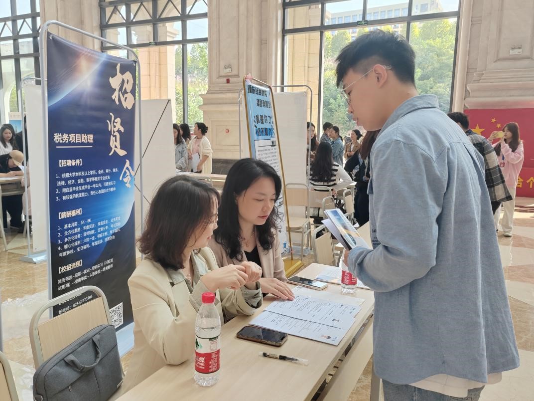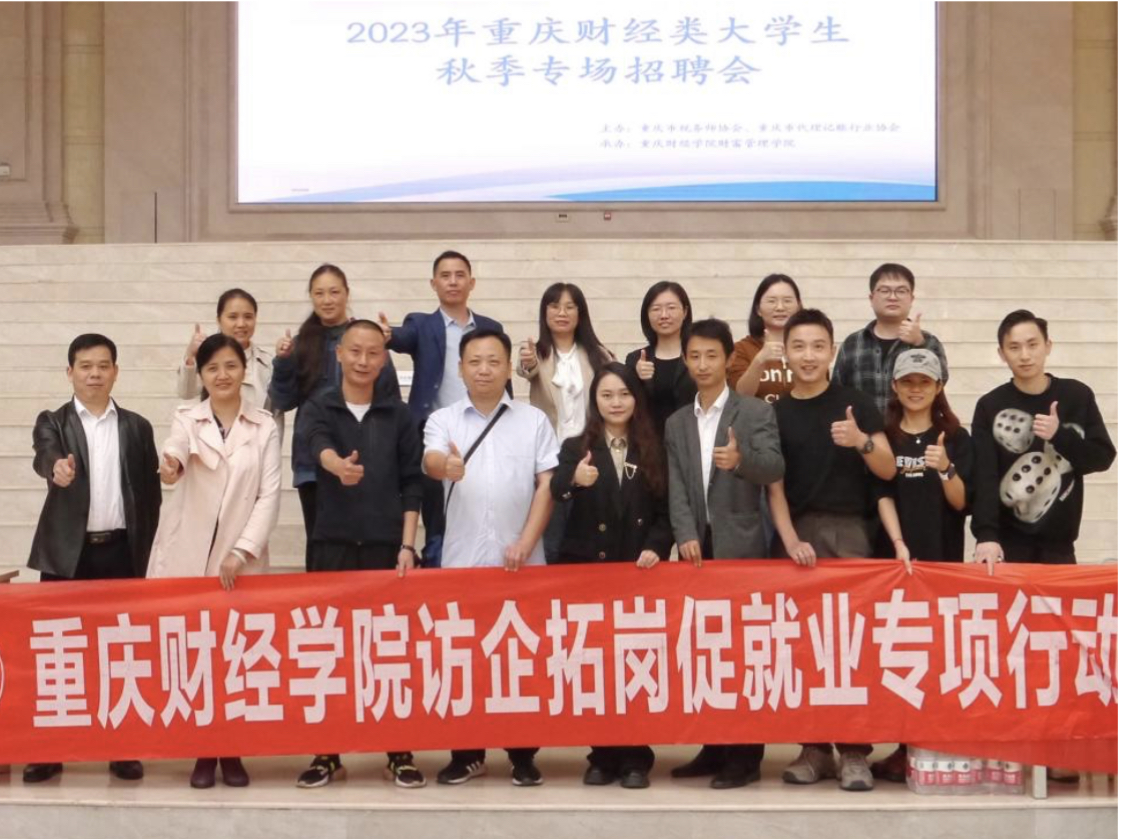 为贯彻落实党中央、国务院“稳就业”“保就业”的决策部署,全面发挥校企联盟优势,助力毕业生实现更高质量就业。10月20日上午,2023年重庆财经类大学生秋季专场招聘会在我校教学楼大厅顺利举行,本次招聘会由重庆市税务师协会、重庆市代理记账行业协会主办,我校财富管理学院承办。