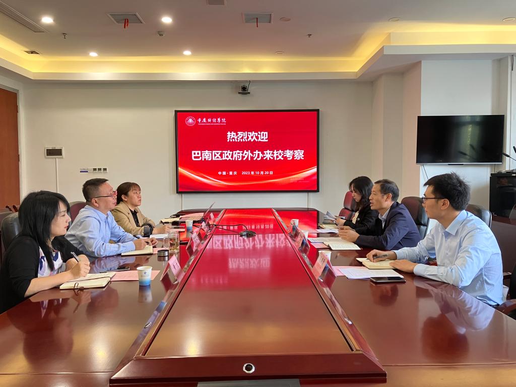 10月20日上午,重庆巴南区政府外办副主任叶旺率秘书科科长范明贵、综合科科长石成诚来我校调研。我校副校长张立、国际合作与交流处处长石转转、国际商学院院长黄兰等参加了调研会议。