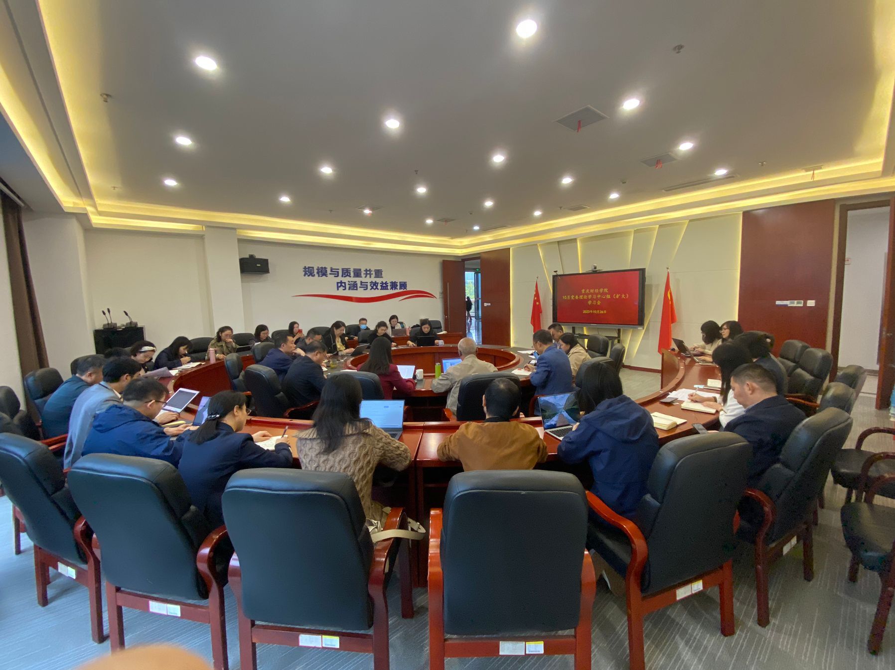 张毅强调:要深入学习贯彻习近平文化思想,充分发挥高校“以文化人”、“以文育人”作用,凝聚社会主义核心价值观的重要功效,推动学校校园文化建设和学校内涵式发展。一是深刻认识和把握宣传思想文化工作的重大意义。牢牢把握促进文化自信自强的职责使命,扛起守土尽责的政治要求;二是深刻认识和把握习近平文化思想。准确把握习近平文化思想的鲜明特征,全面认识这一重要思想的核心要义和精神实质的关键所在;三是坚持用习近平文化思想引领学校宣传思想文化工作。在深化学习、内化研究、转化创新上下功夫,提高创新本领,打造宣传品牌。